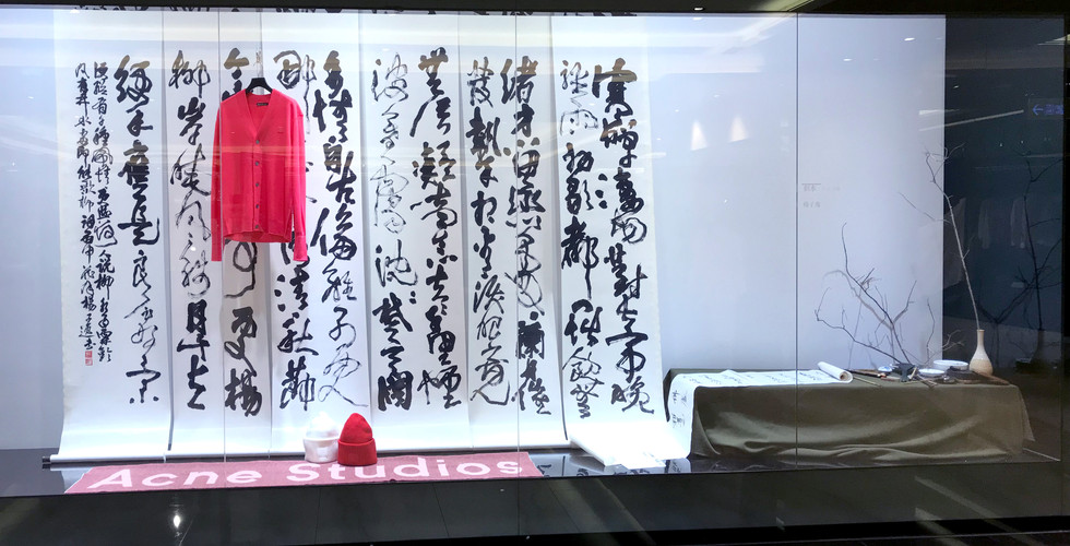 書畫作品承繼千年來的傳統文化,演繹著水墨與宣紙間的相對關係,將墨的透明性和宣的薄透,形成渲染的張力。本次展覽揉合著古典藝術的文人氣息,對應品牌衣飾的前衛風格,墨客對話騷人,是衝突抑或共融,期待觀者來解讀感受、相濡以「墨」。